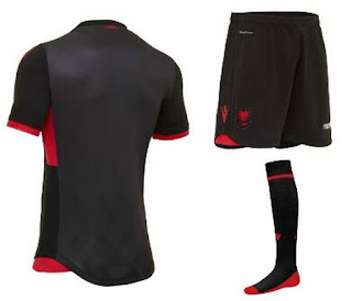 "ALBANIA" está impreso en el área de las equipacion Albania 2017 2018.